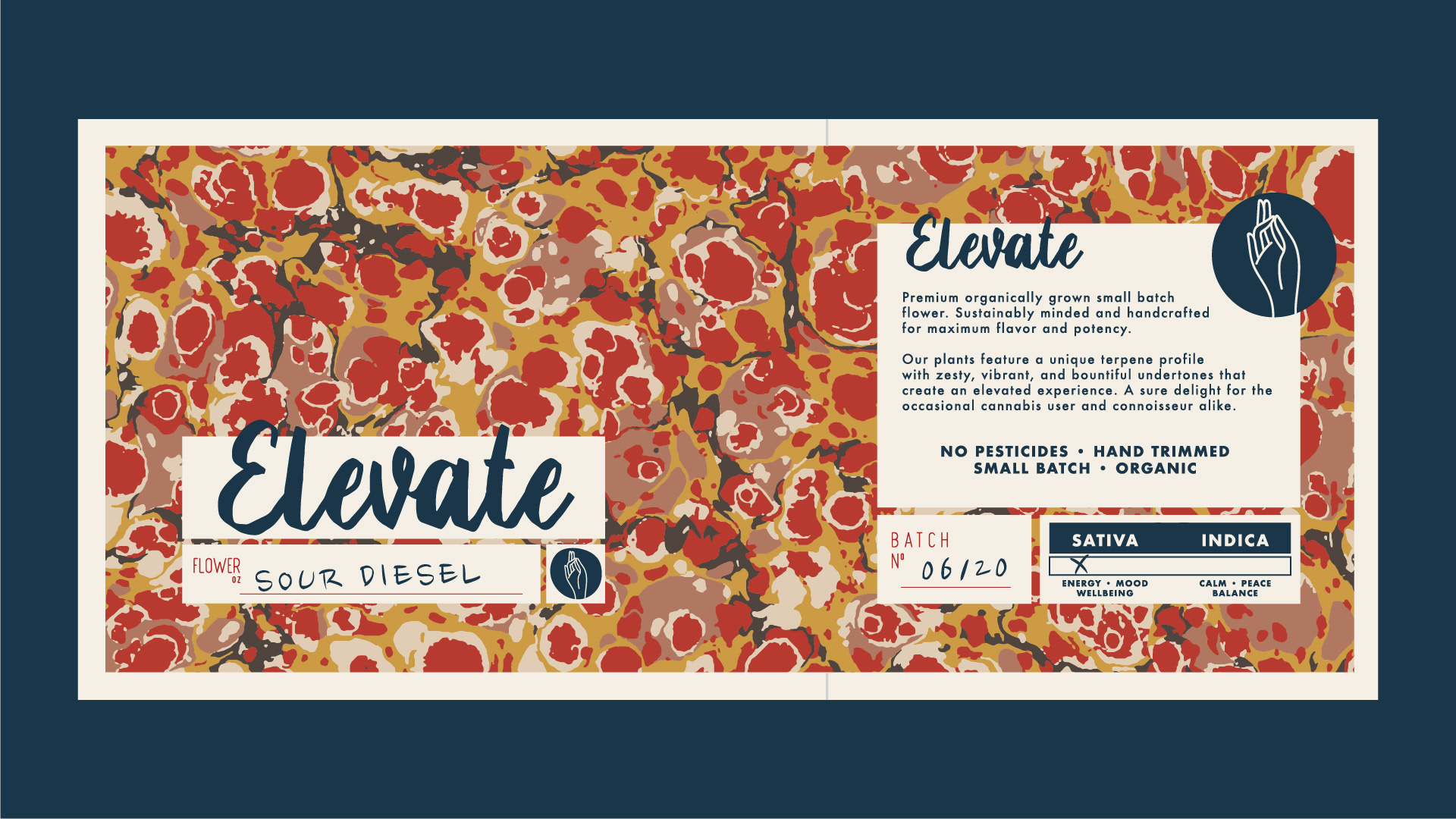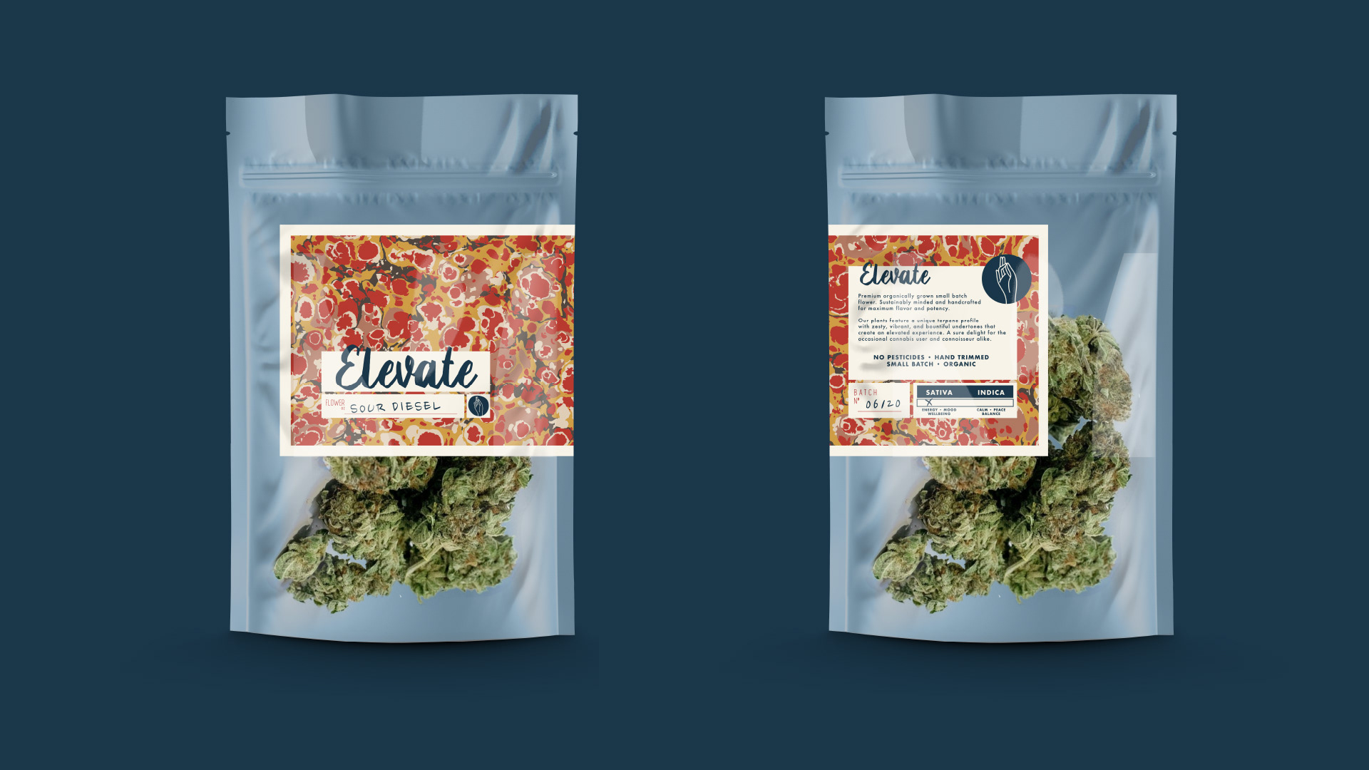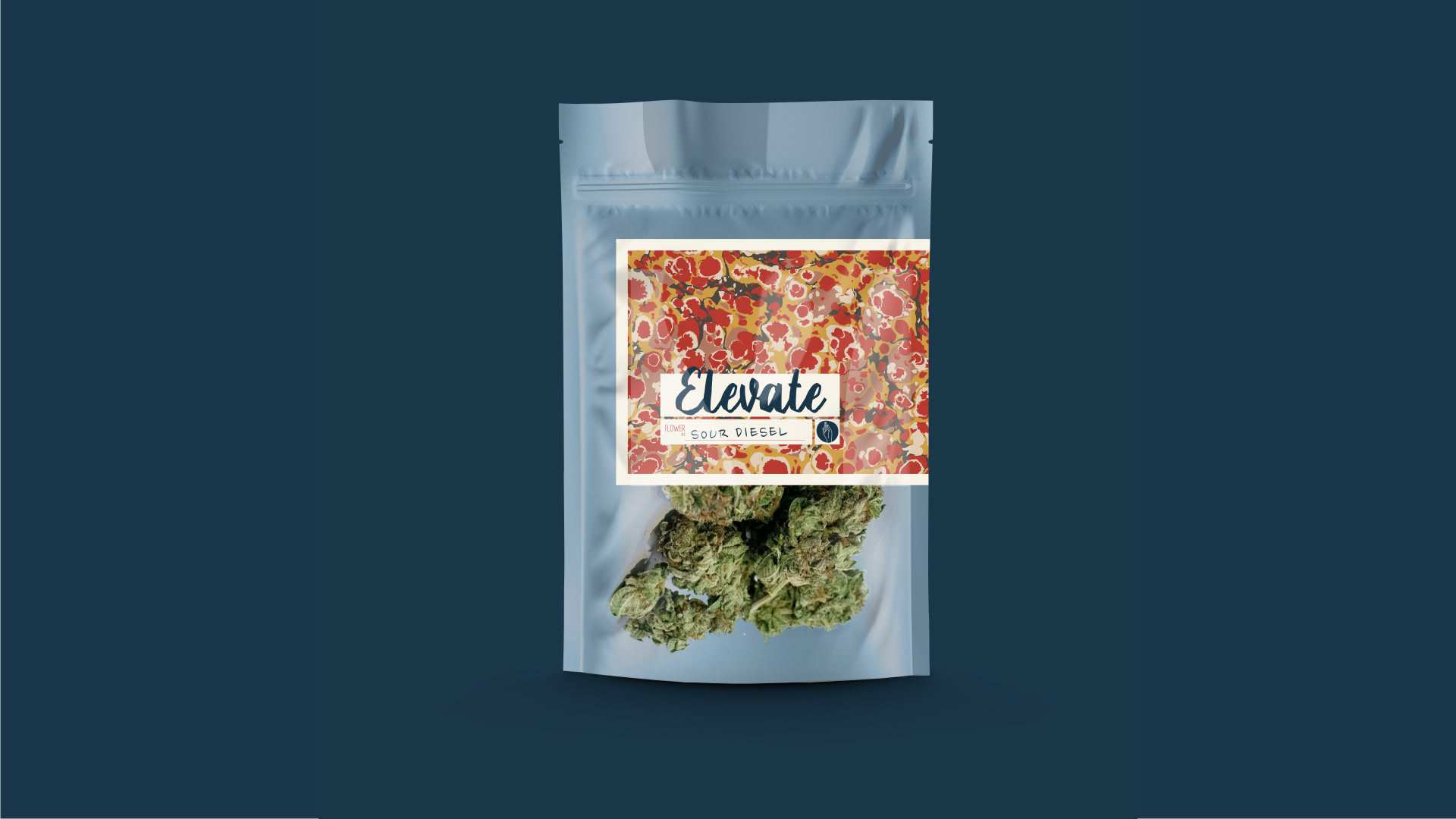 Packaging/ branding for an organic cannabis brand. Biodegradable bags, compostable labels, and soy ink help reduce the carbon footprint of this packaging design.