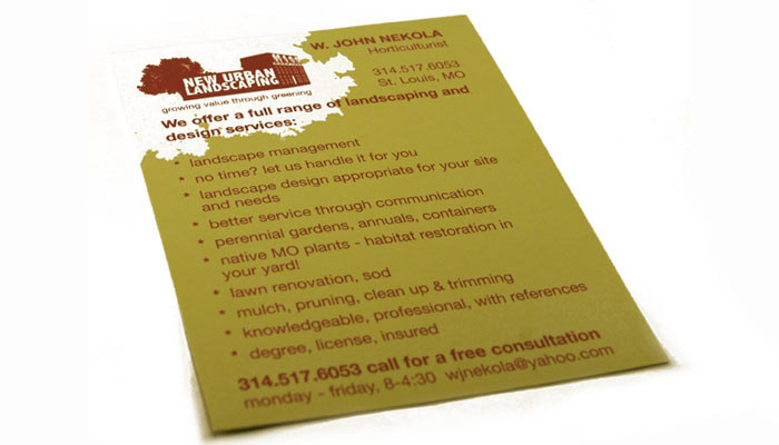 branding package for a progressive green landscaping business, including business cards, car door magnets, yardsigns, and flyers