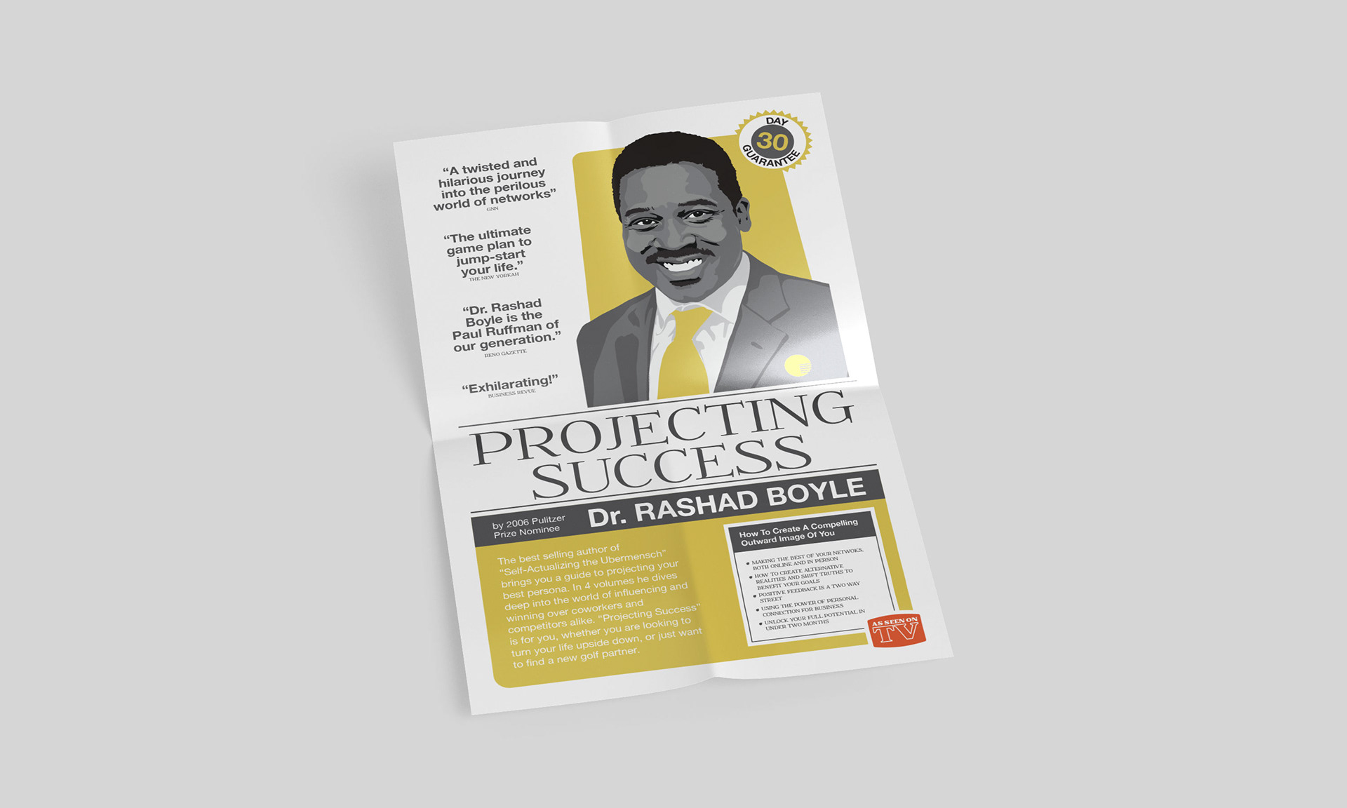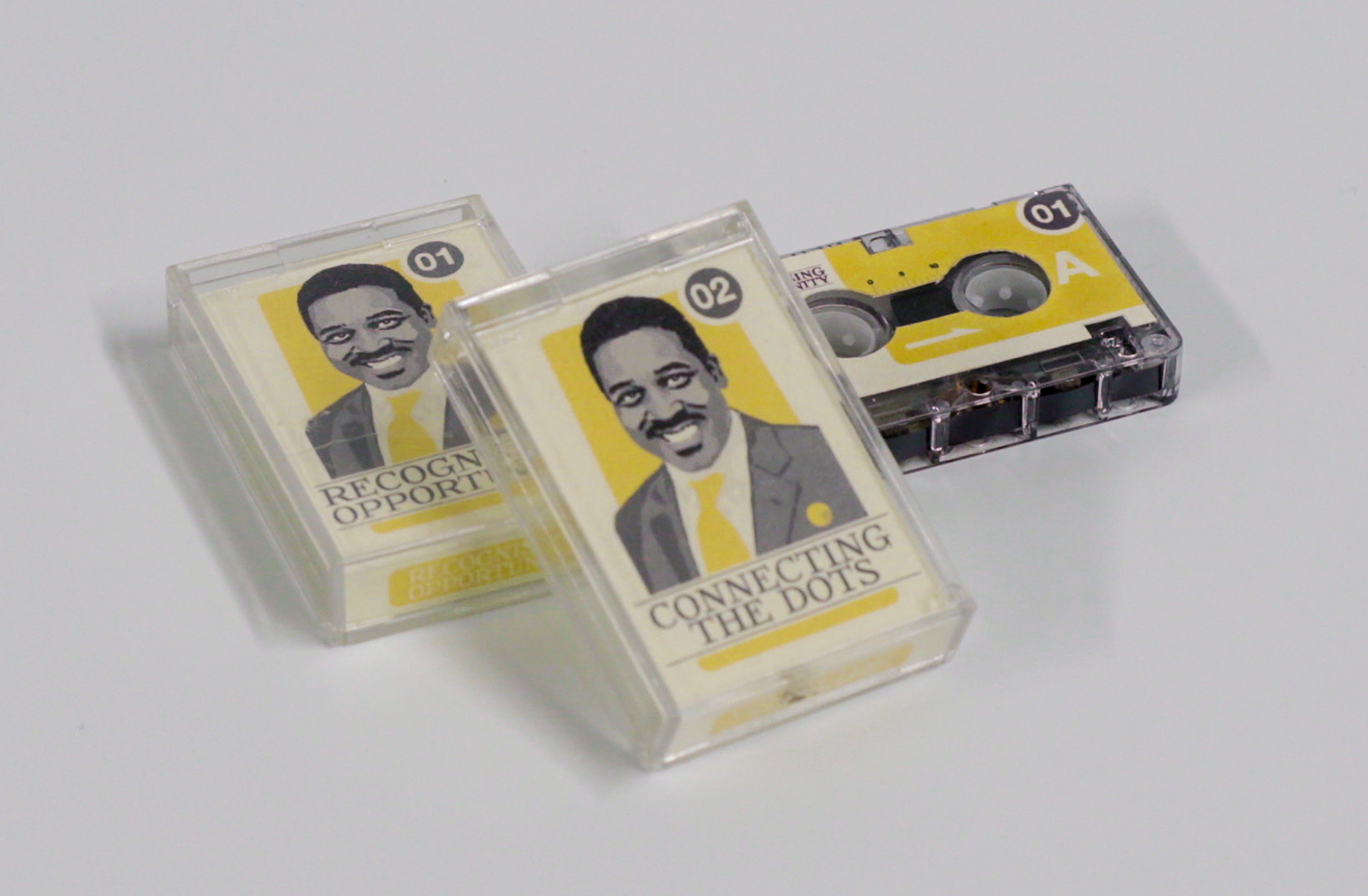 Mock motivational tapes and accompanying sales poster