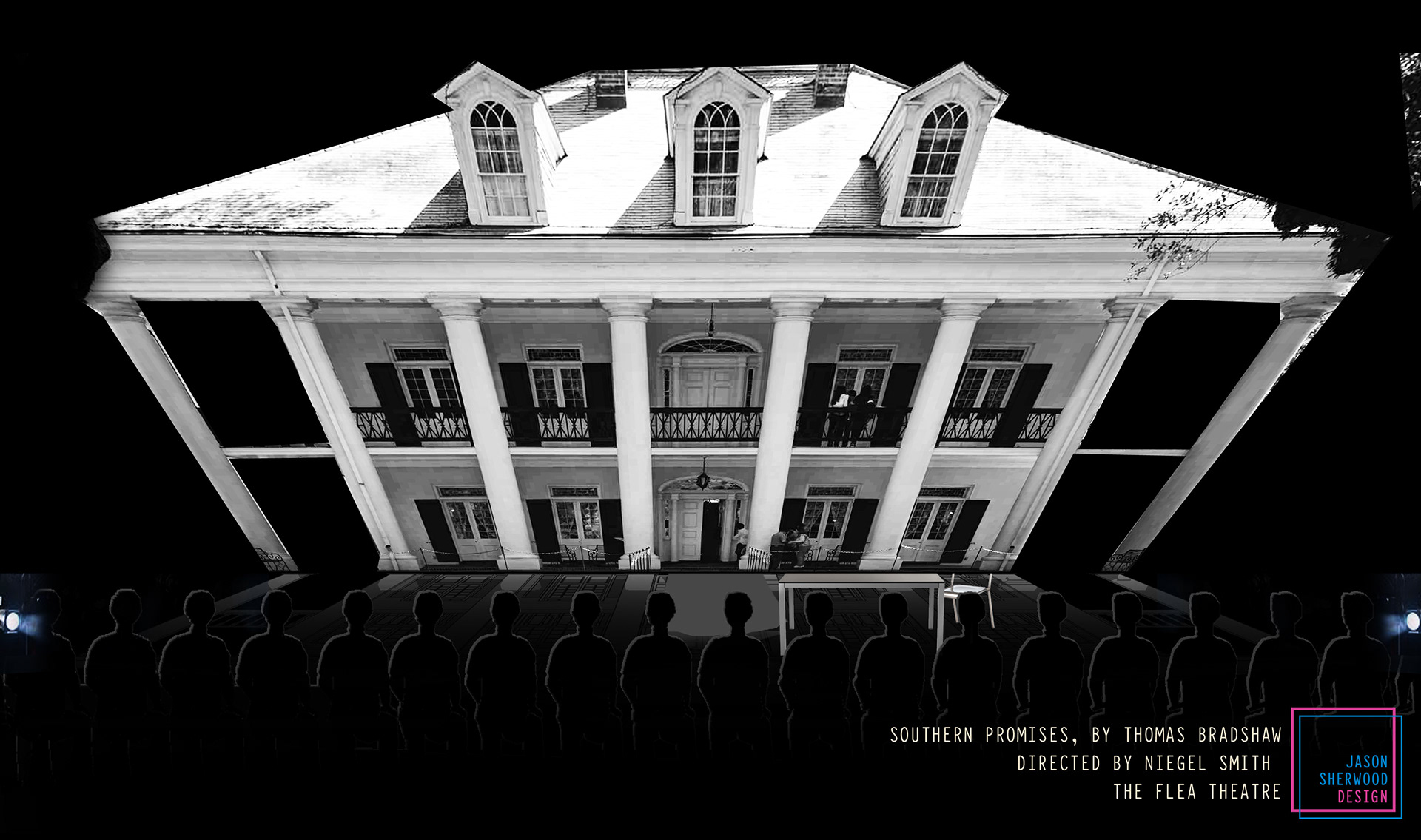Southern Promises at The Flea. Director Nigel Smith, Scenic Designer Jason Sherwood. I created the graphic for the printed backdrop.