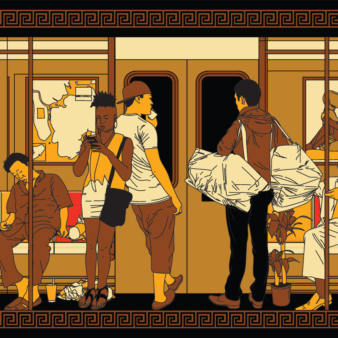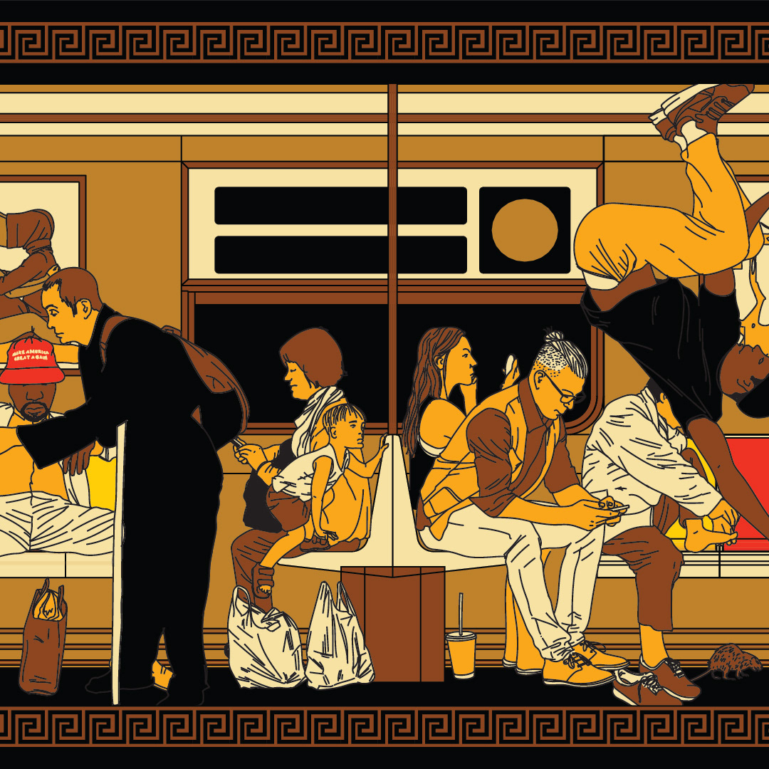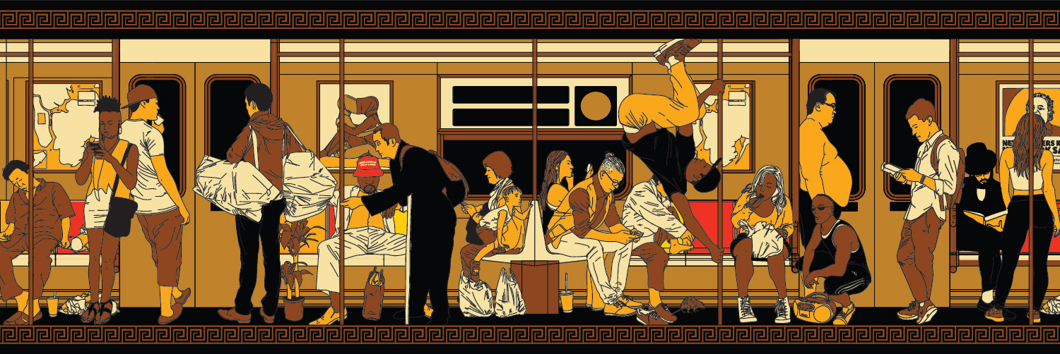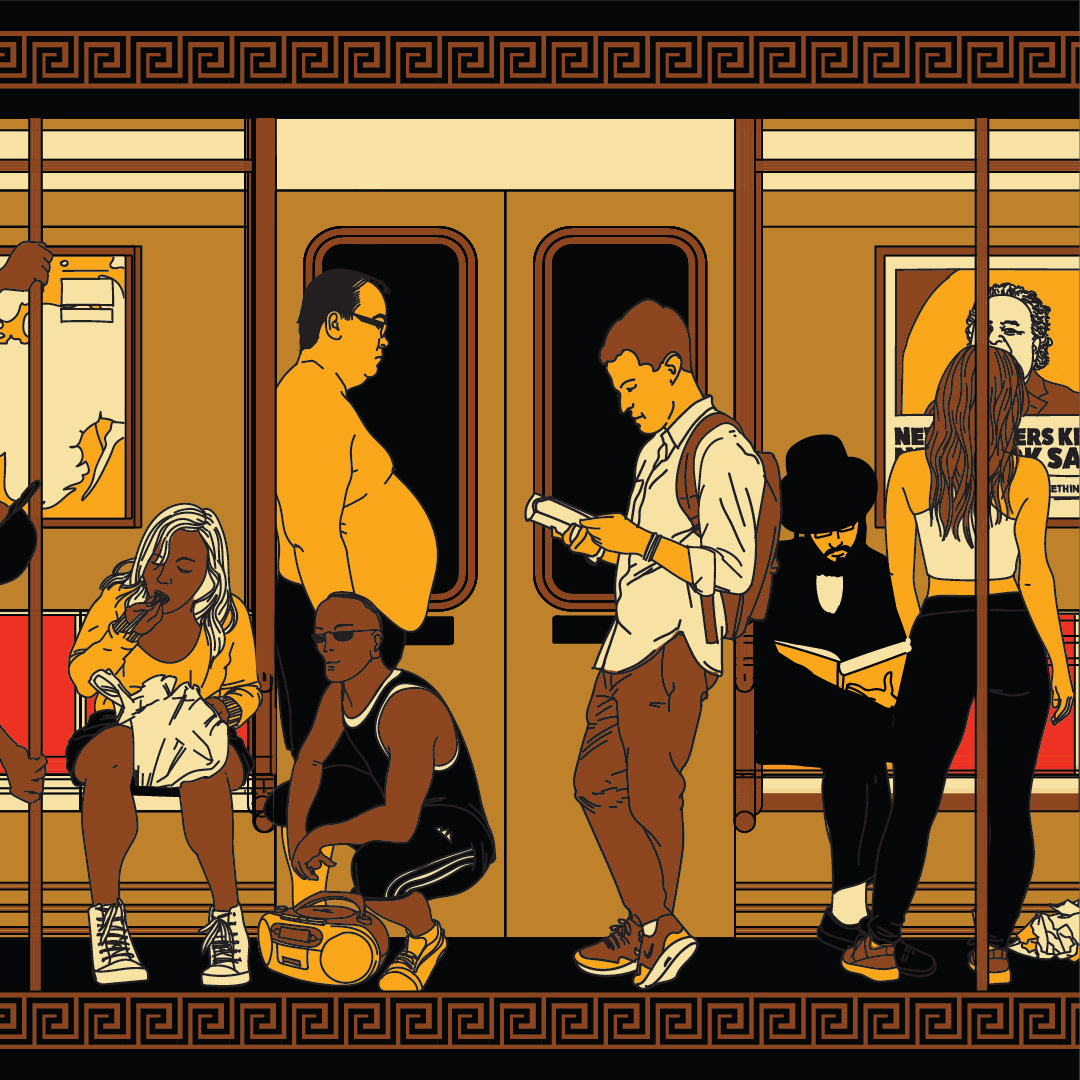Illustration depicting some of the more illustrious characters you might encounter on tour New York City commute.