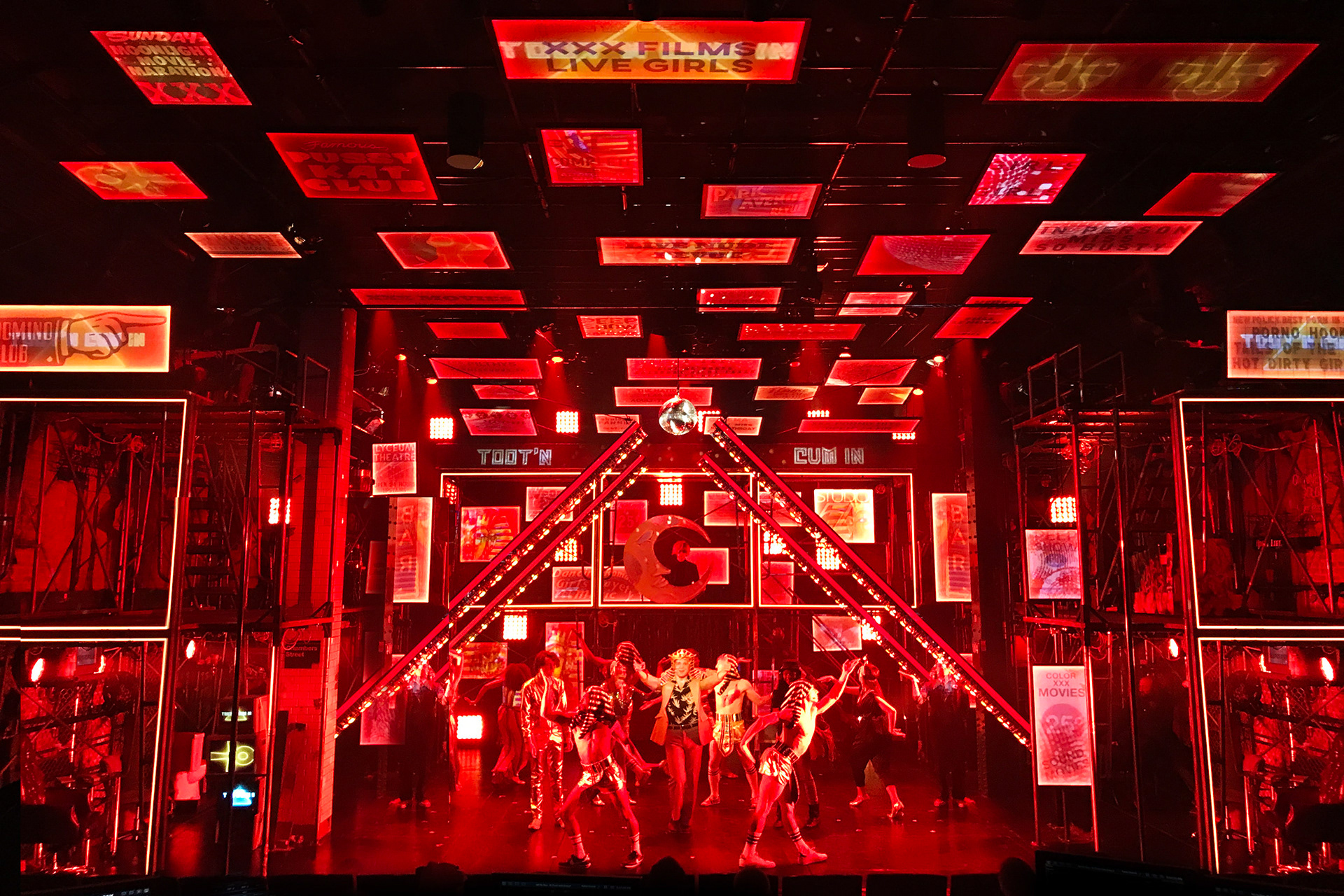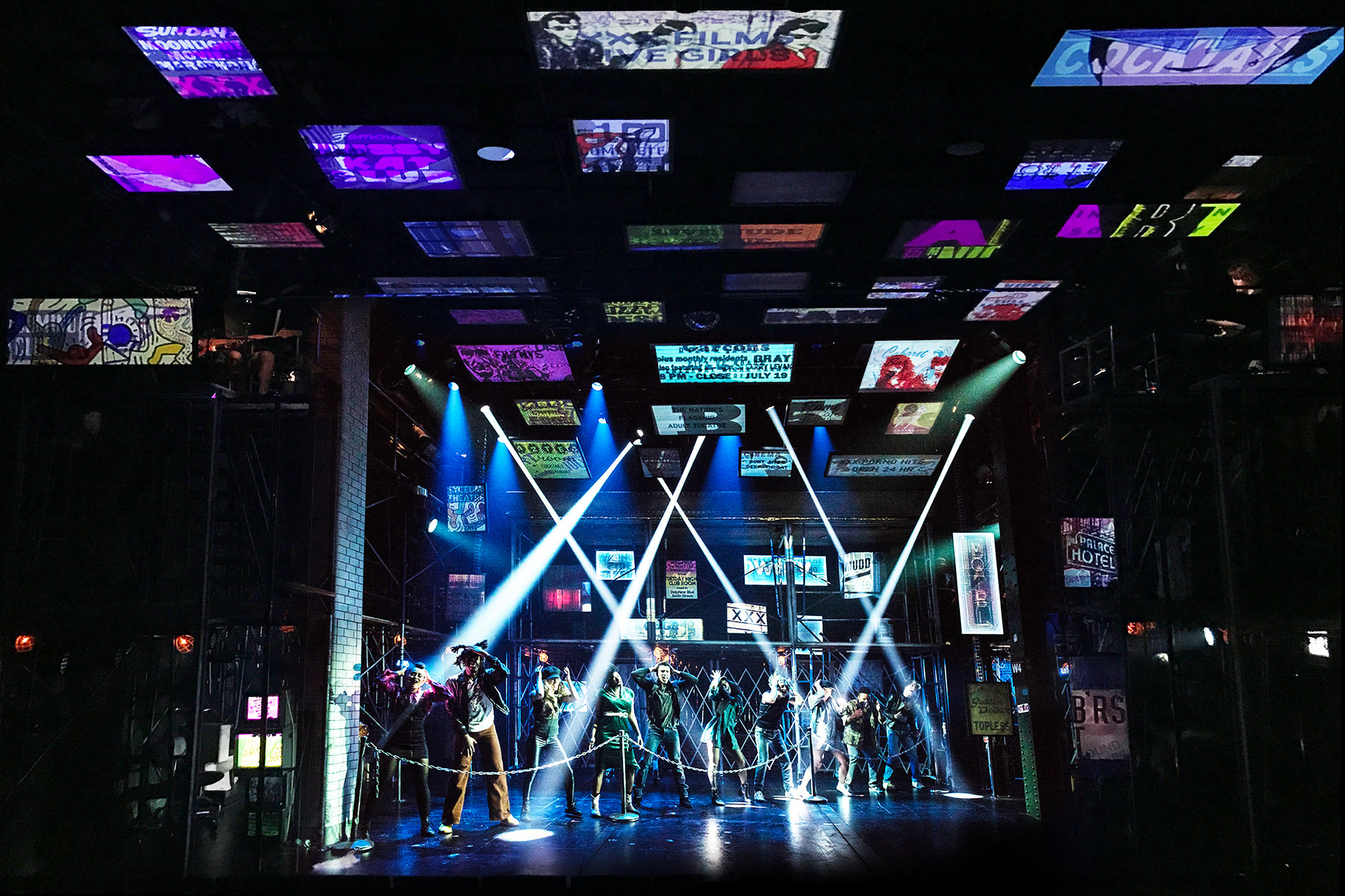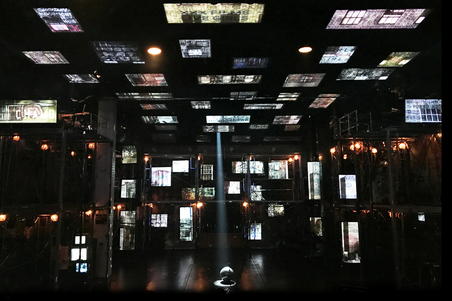 This Ain't No Disco at the Atlantic Theatre Company. Director Darko Tresnjak, Scenic De3signer Jason Sherwood. I designed graphics for light boxes that would change visuals depending on lighting.
